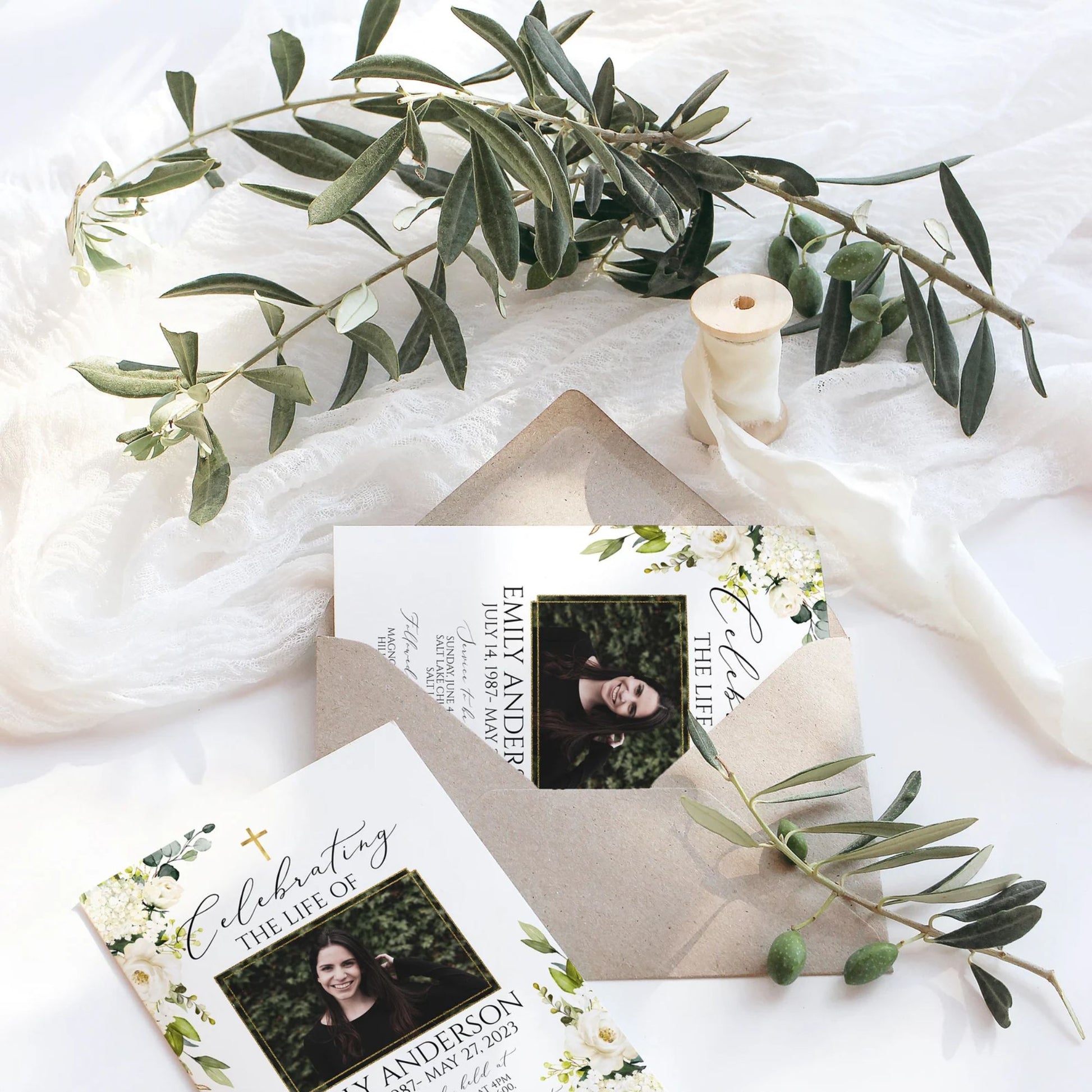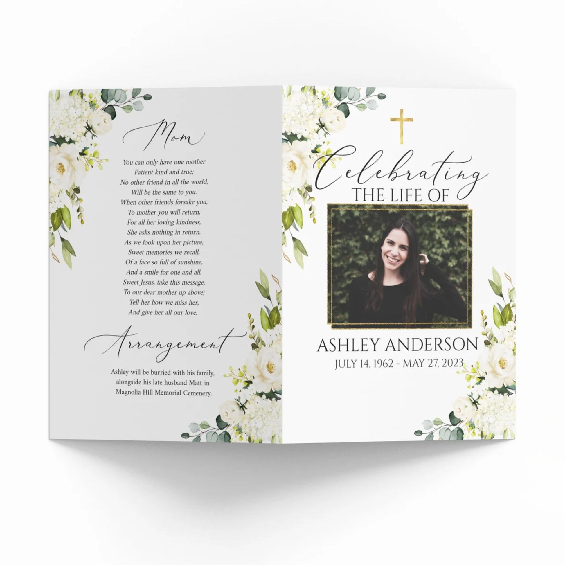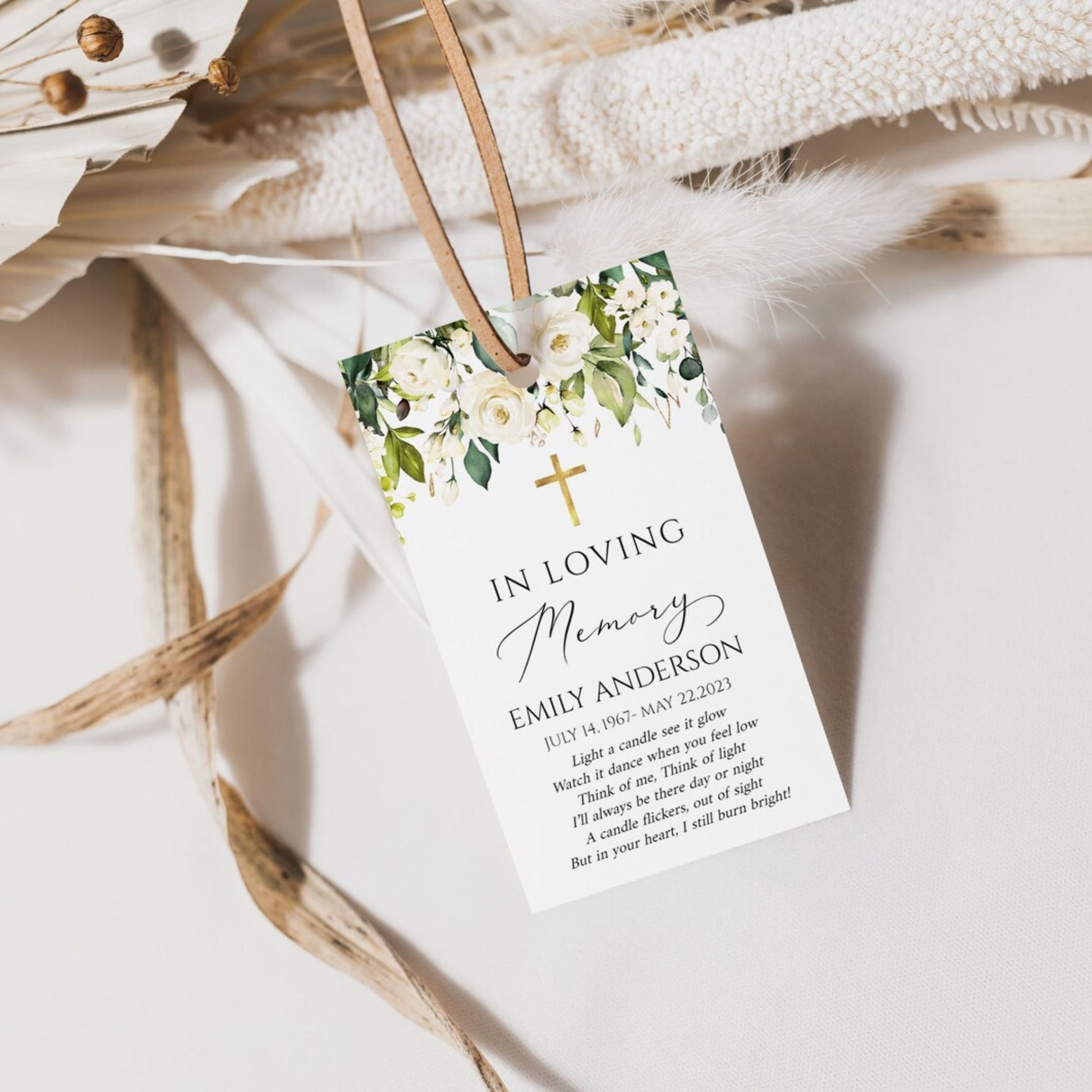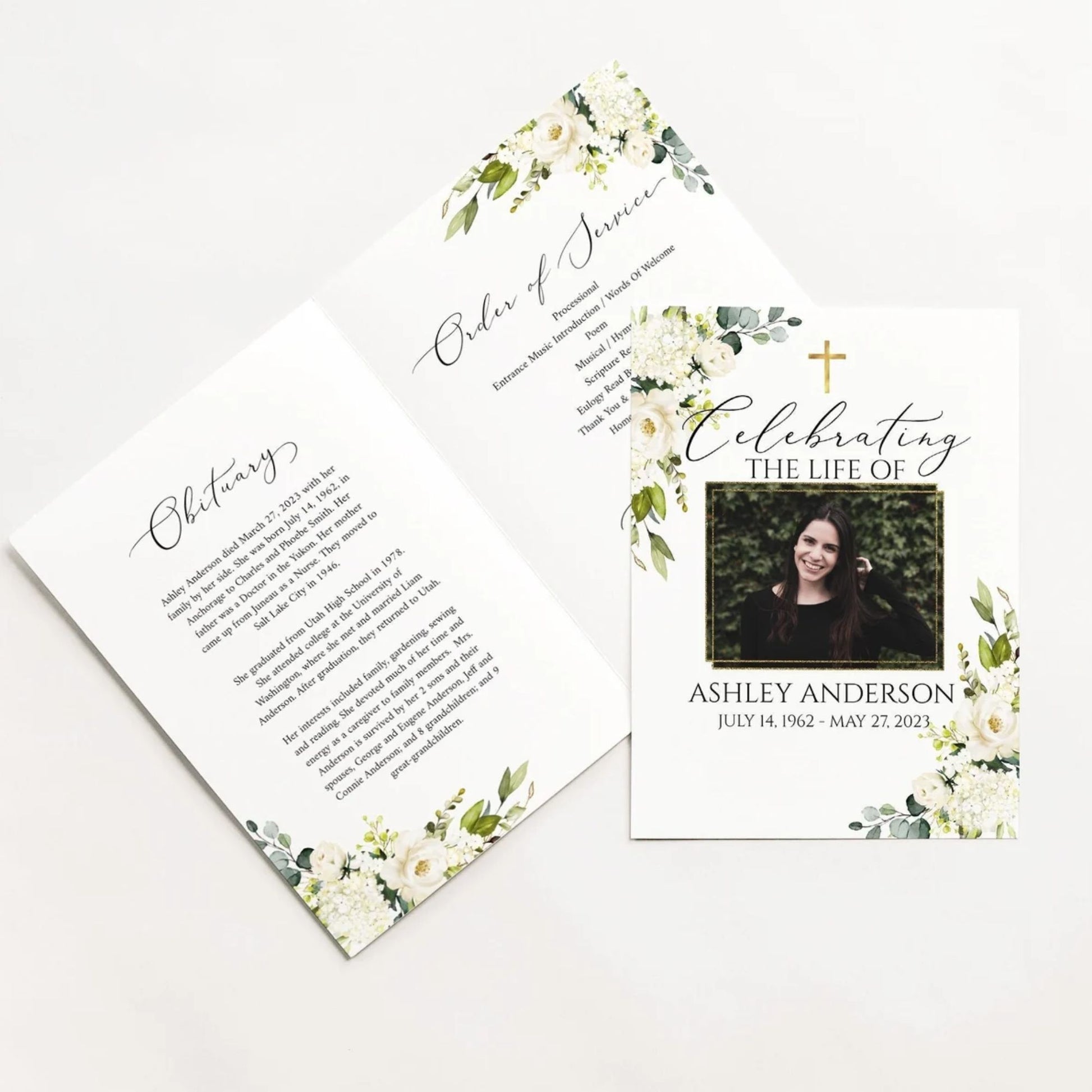 This versatile design can be used across all of our memorial pieces, from service booklets and posters to keepsakes, thank-you cards, and complete packages.