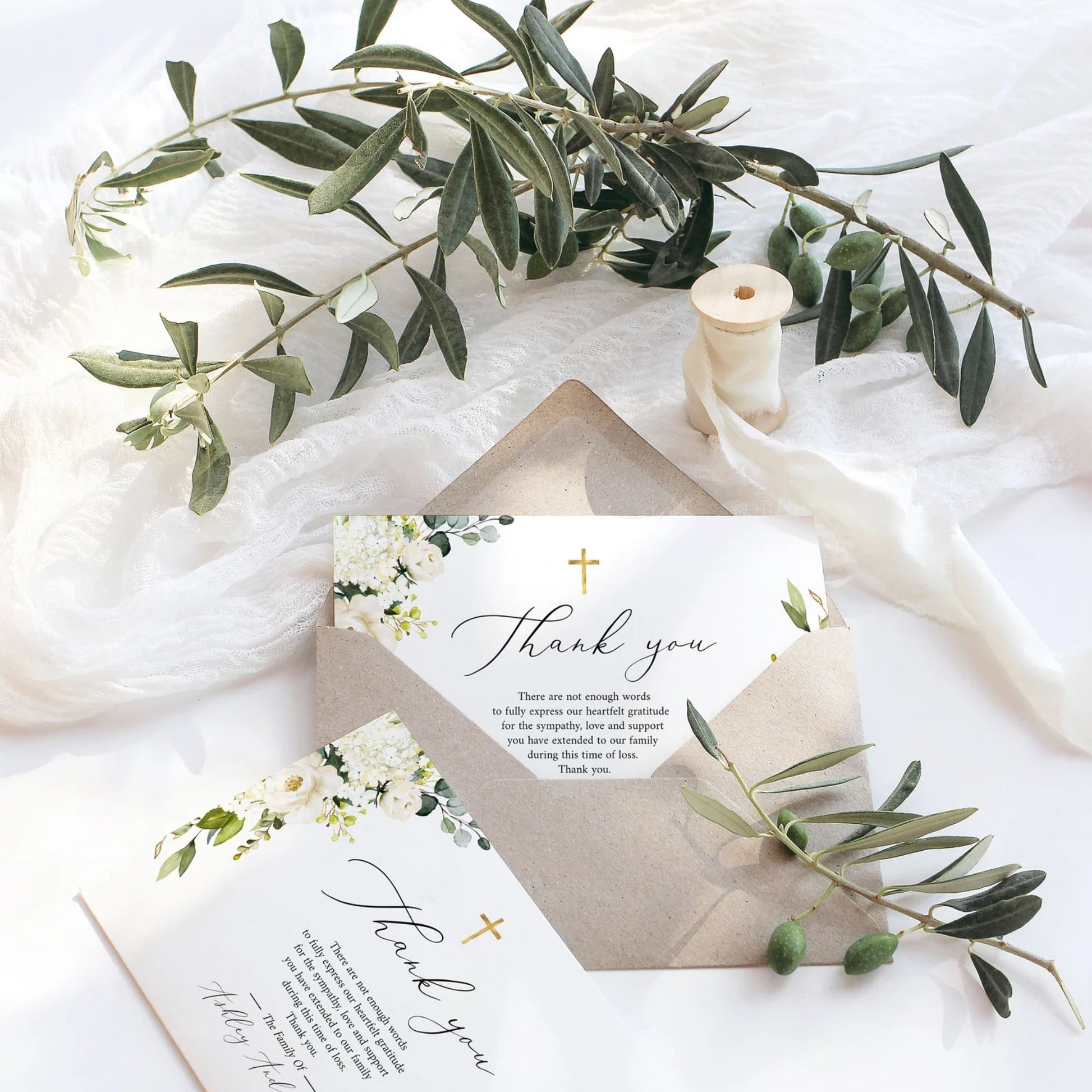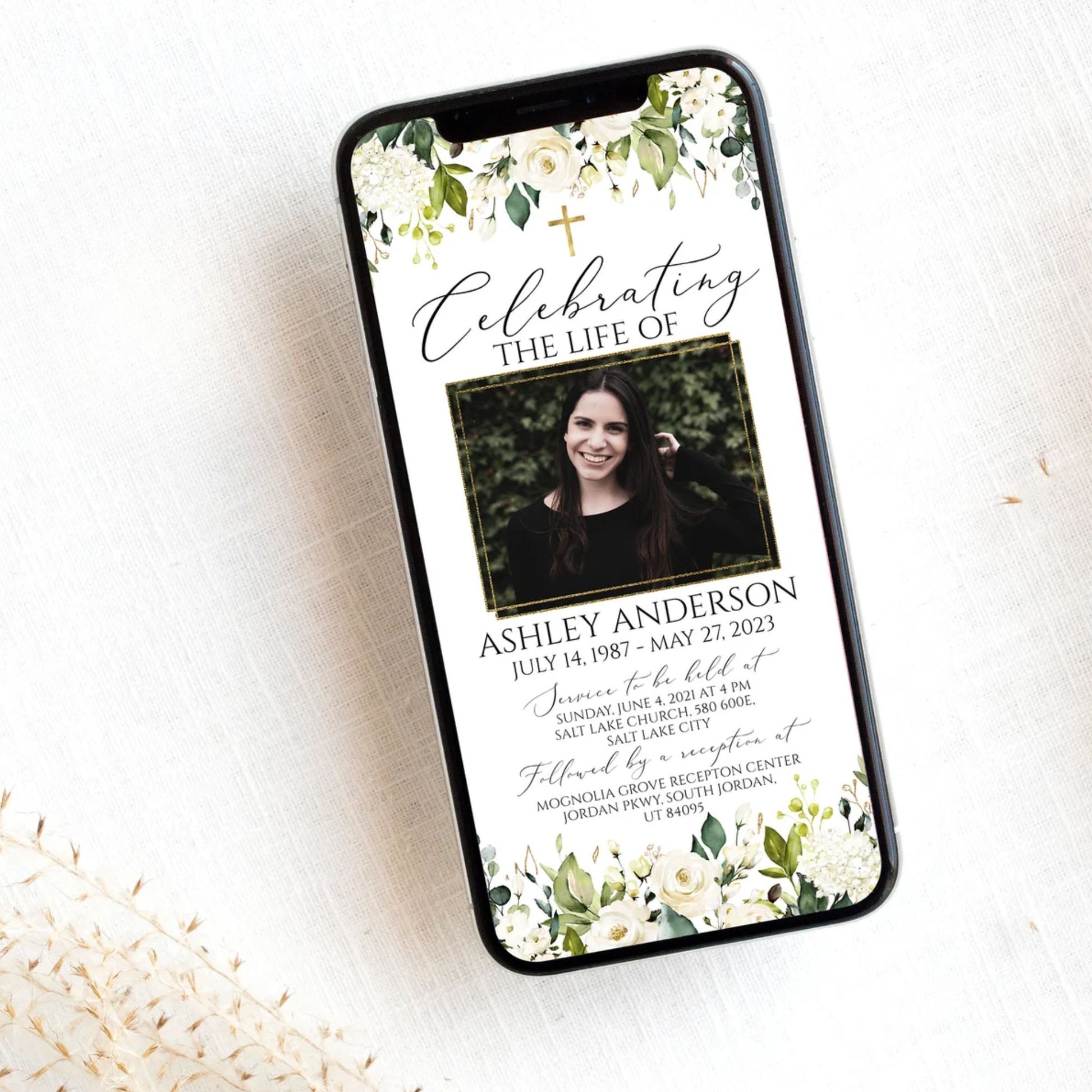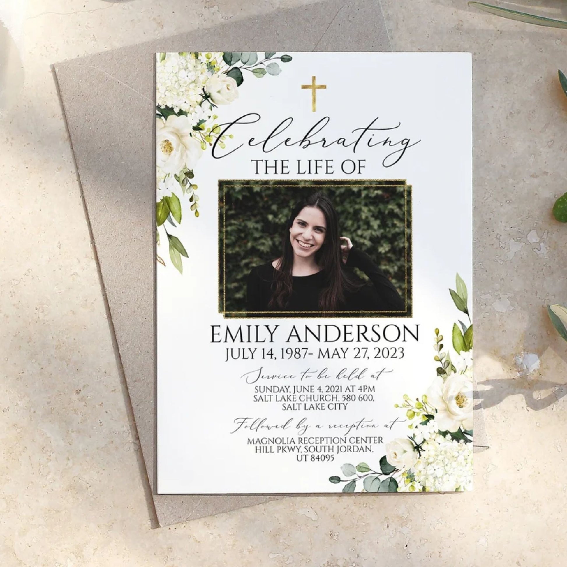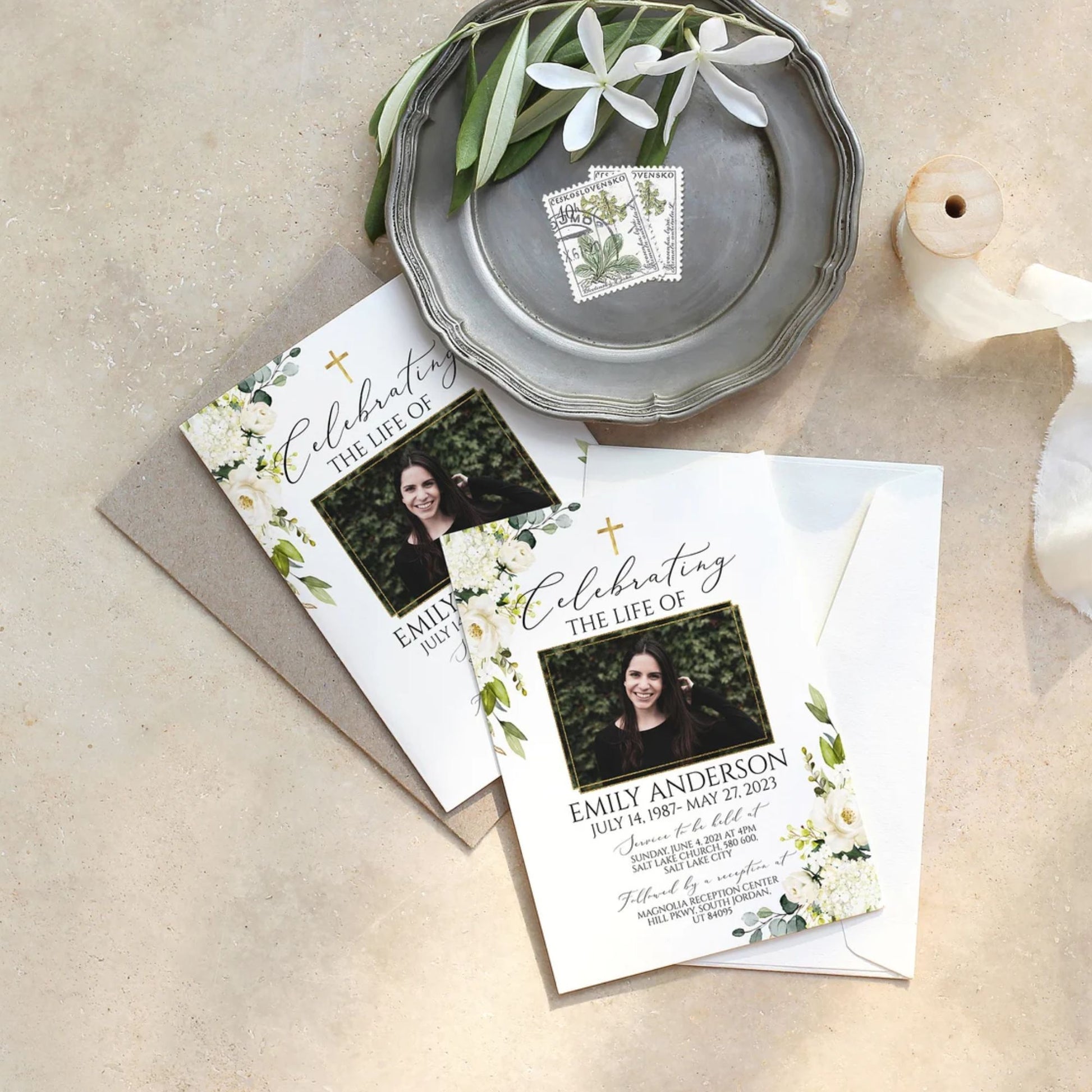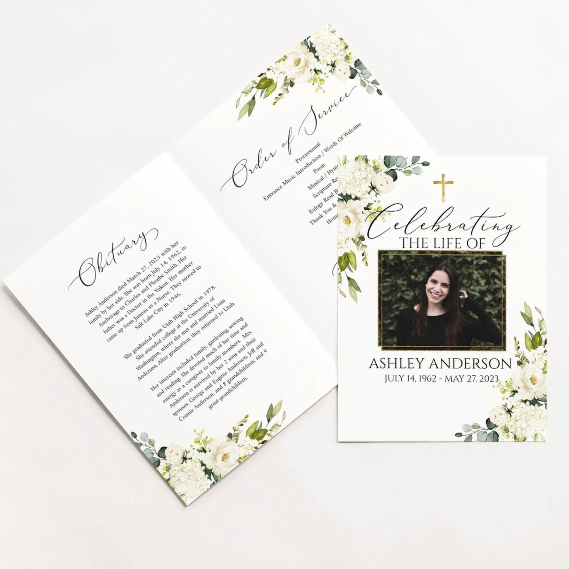 This versatile design can be used across all of our memorial pieces, from service booklets and posters to keepsakes, thank-you cards, and complete packages.