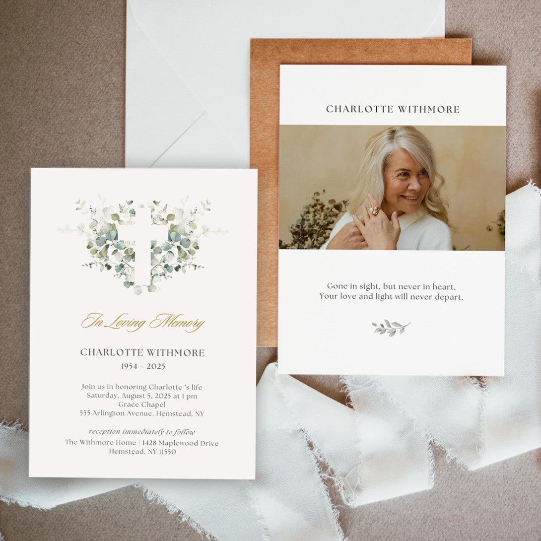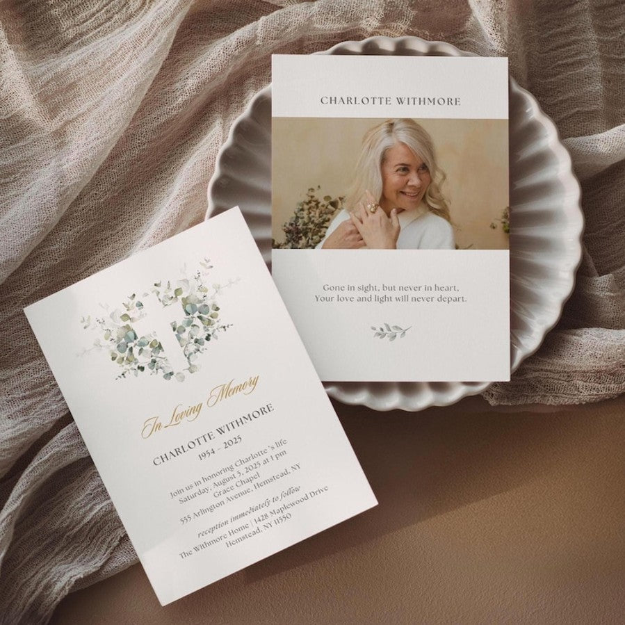 This versatile design can be used across all of our memorial pieces from service booklets and posters to keepsakes, thank-you cards, and complete packages.