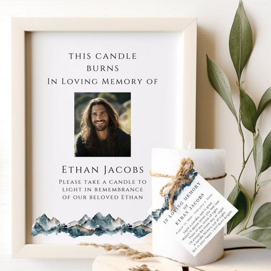 Each candle comes with a custom tag featuring your chosen message, name, or dates, creating a heartfelt tribute to your loved one. A matching A4 display sign is also provided, inviting guests to take one home in memory.