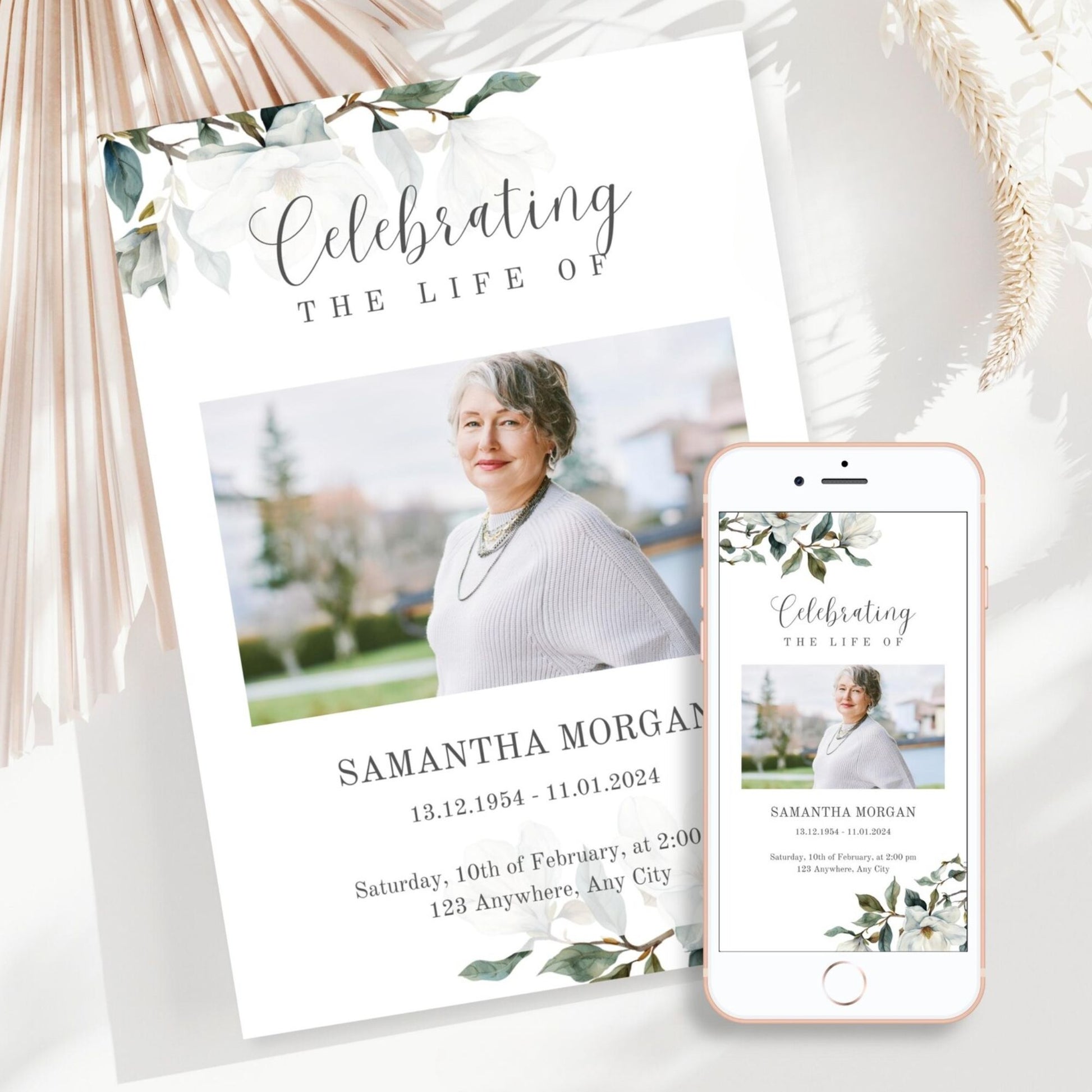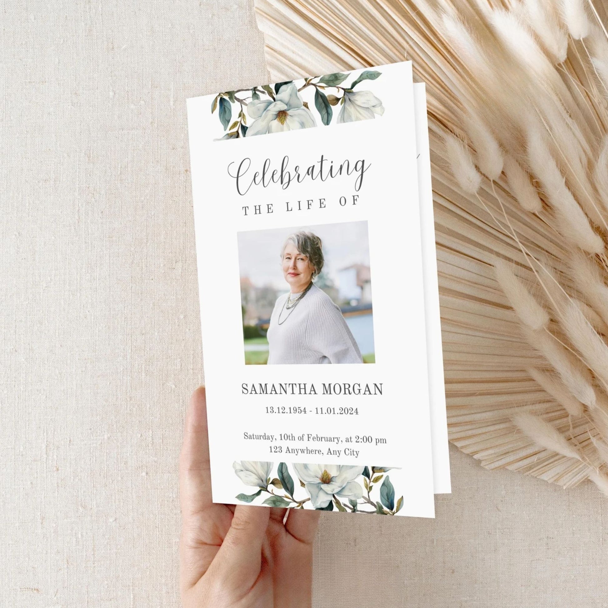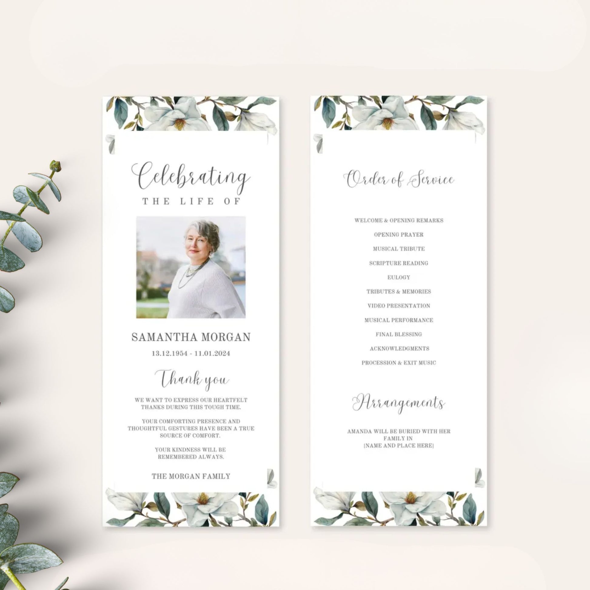 This versatile design can be used across all of our memorial pieces, from service booklets and posters to keepsakes, thank-you cards, and complete packages.