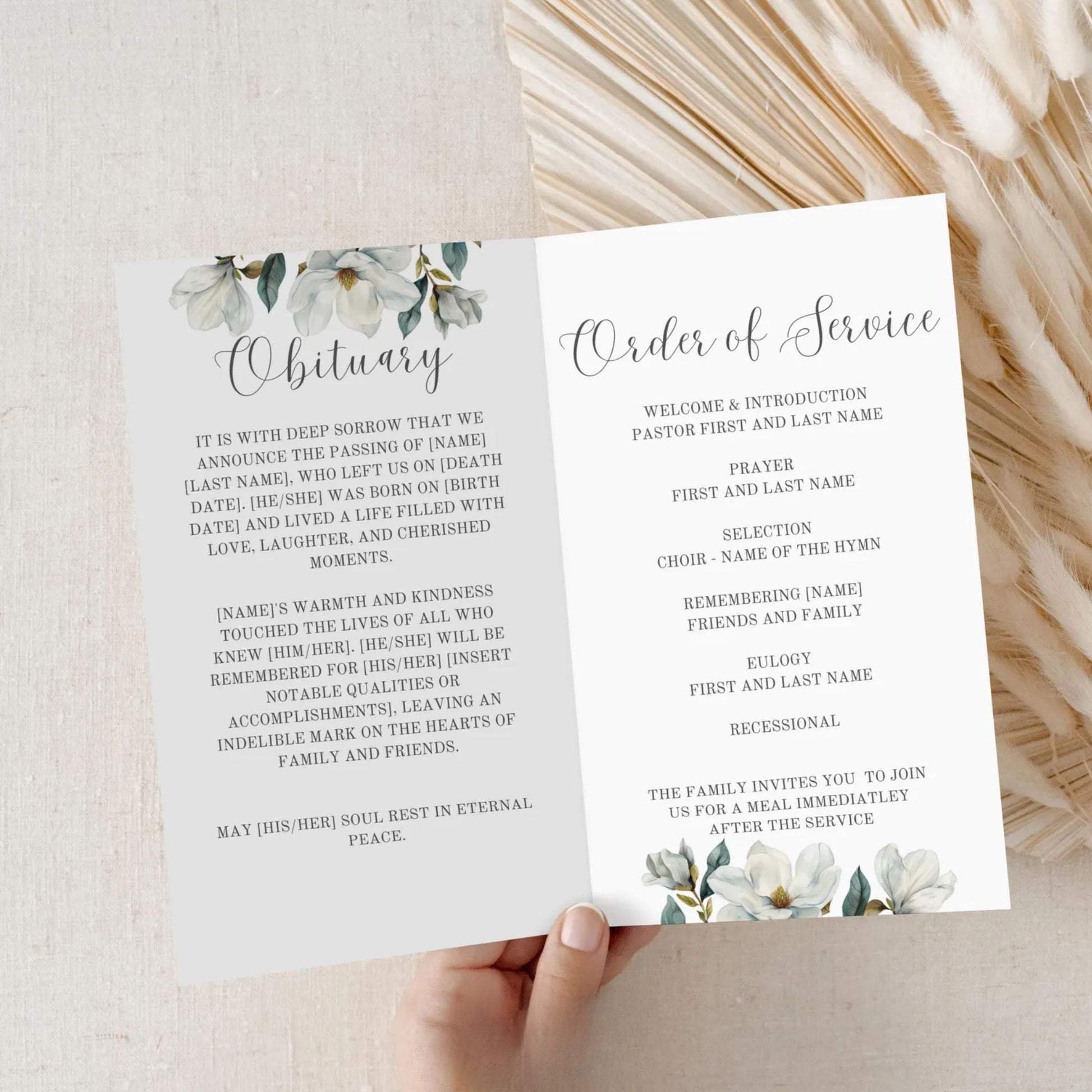 Our Magnolia design embodies the timeless beauty of pure white magnolia blossoms, paired with soft greenery to create a serene and elegant tribute.