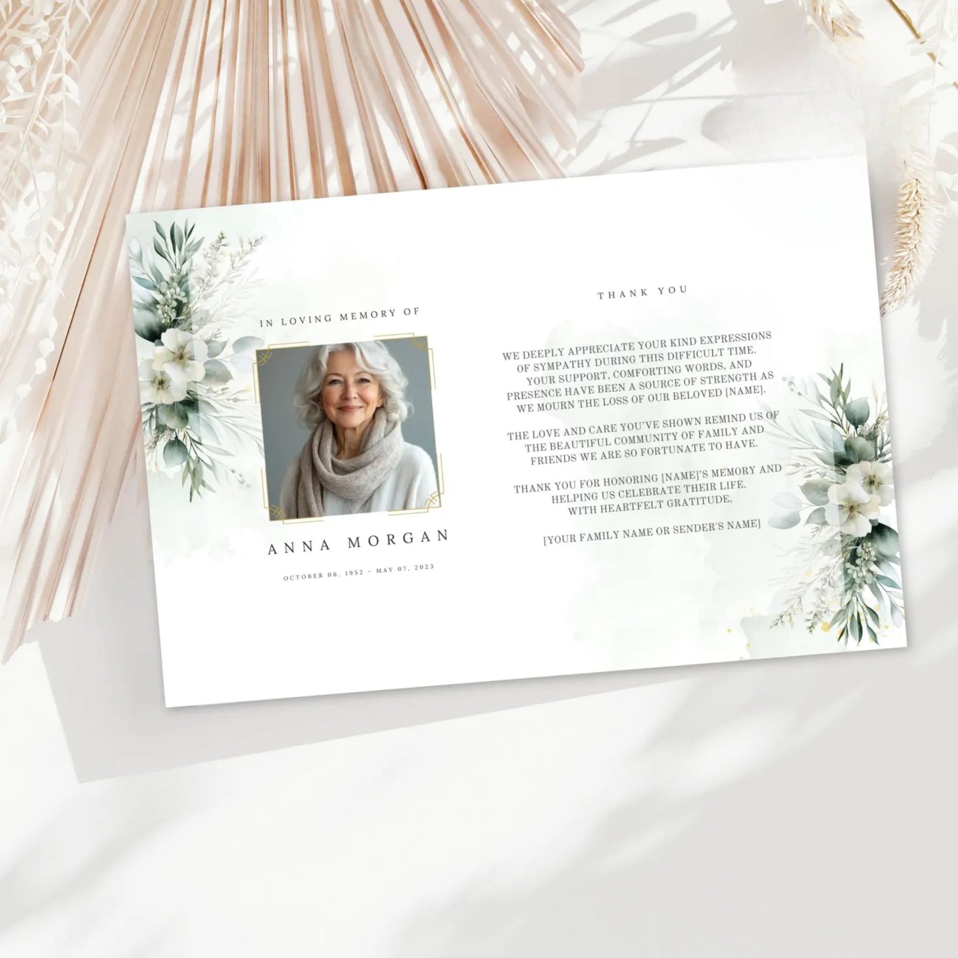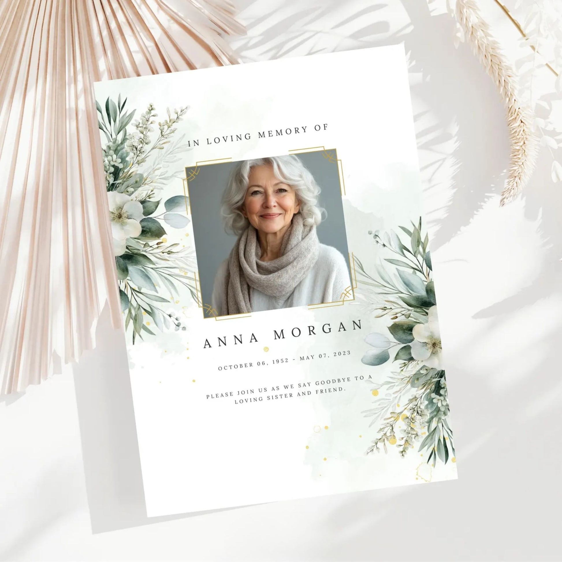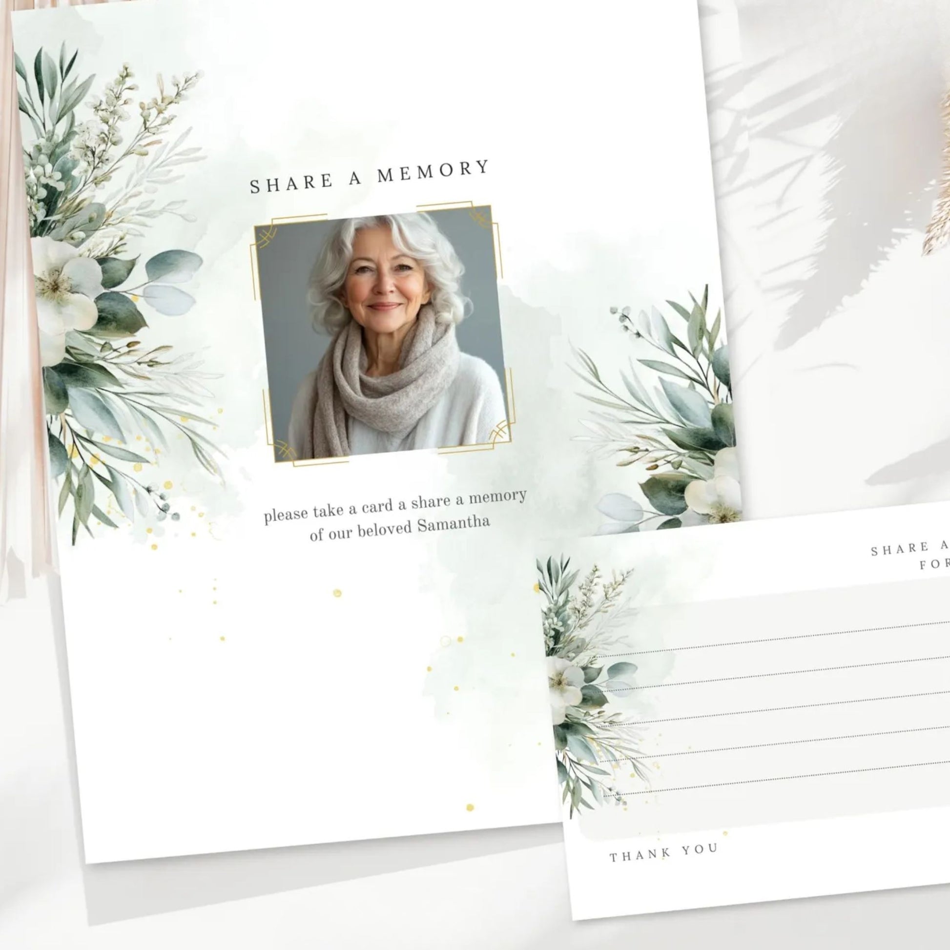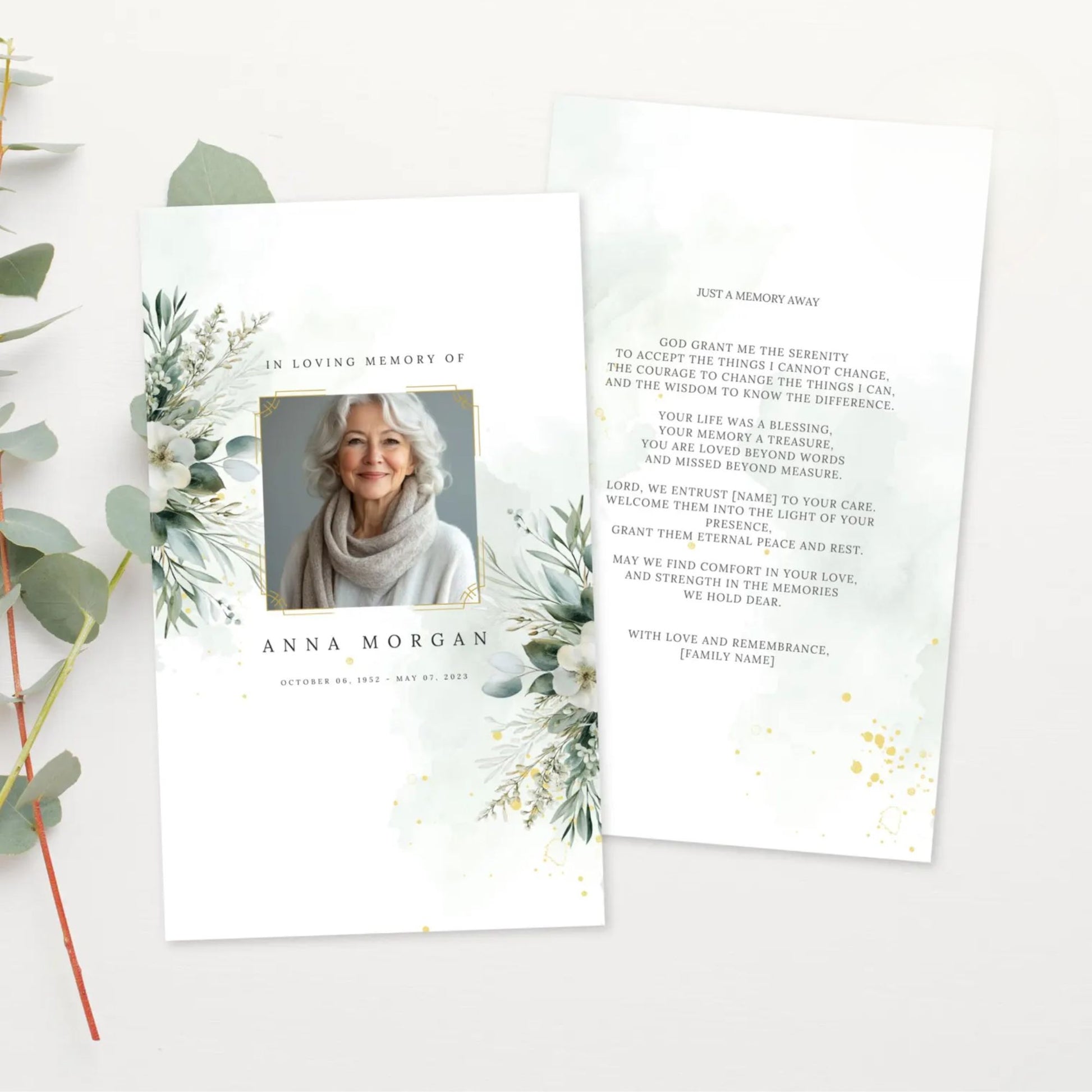 This versatile design can be used across all of our memorial pieces, from service booklets and posters to keepsakes, thank-you cards, and complete packages.