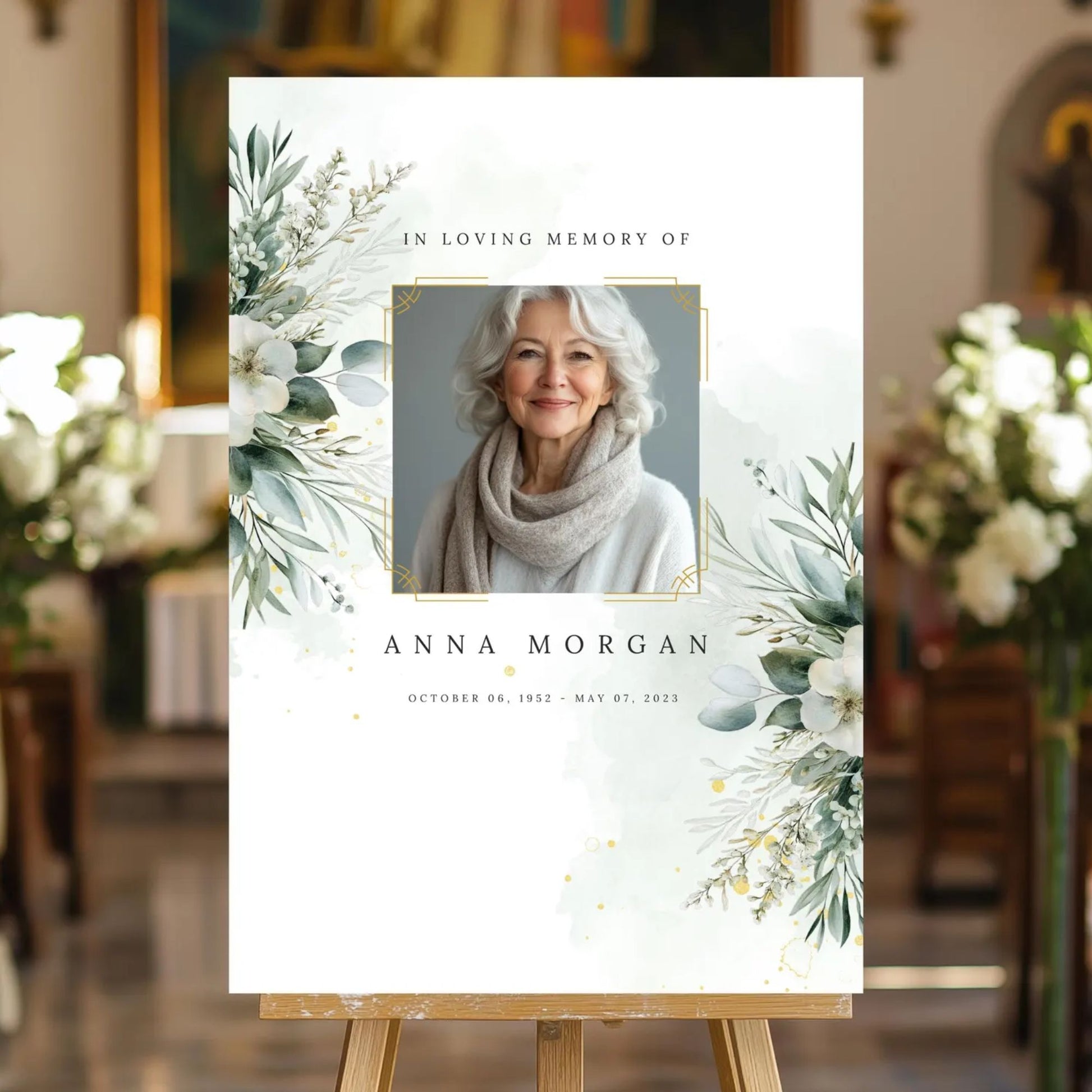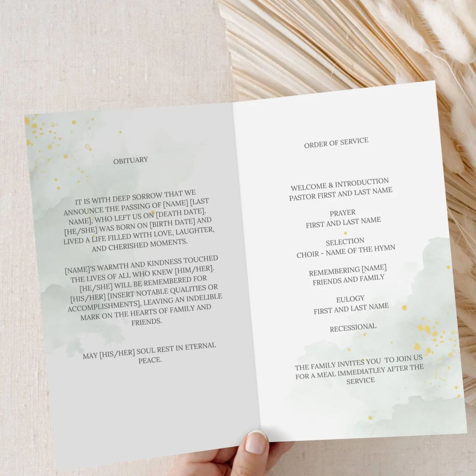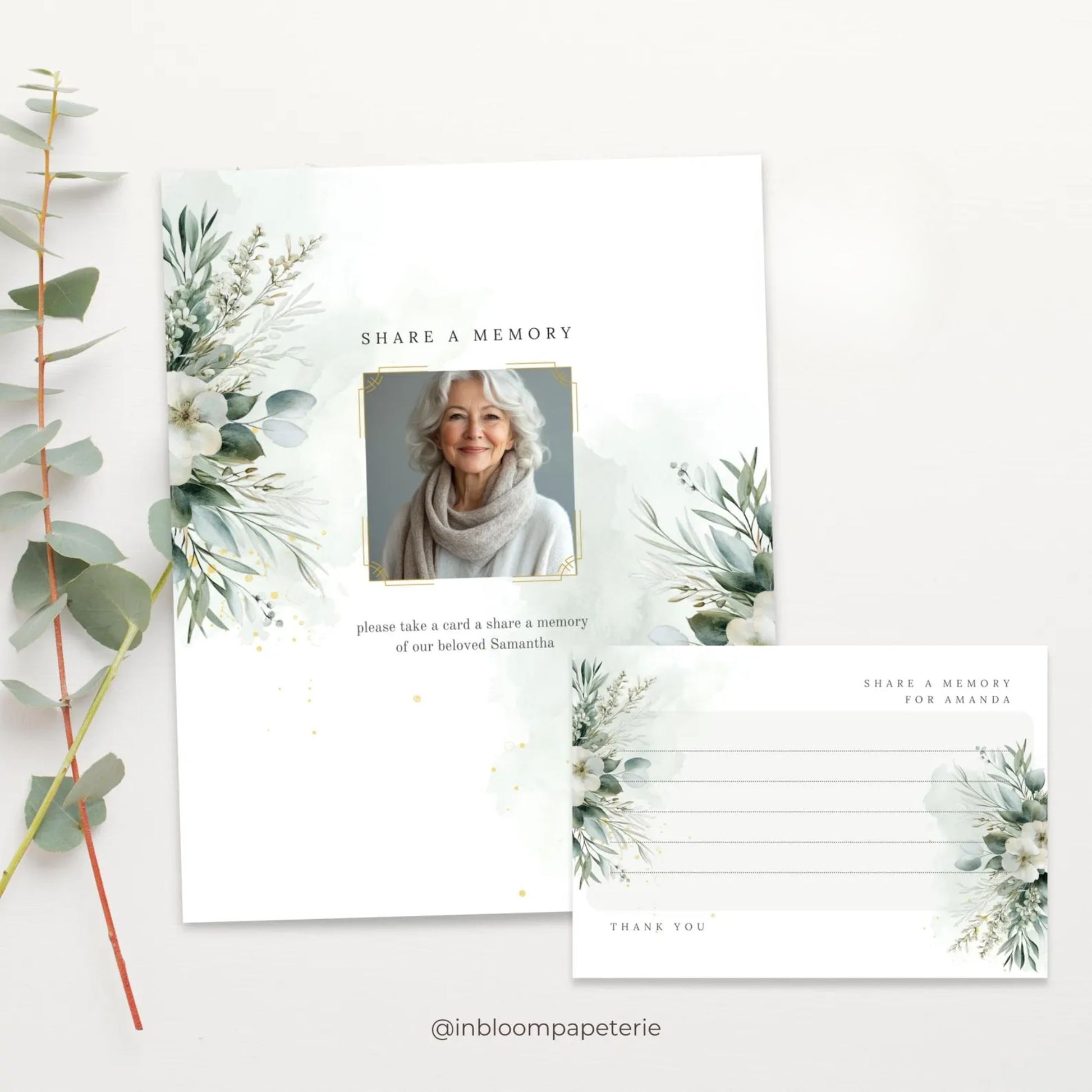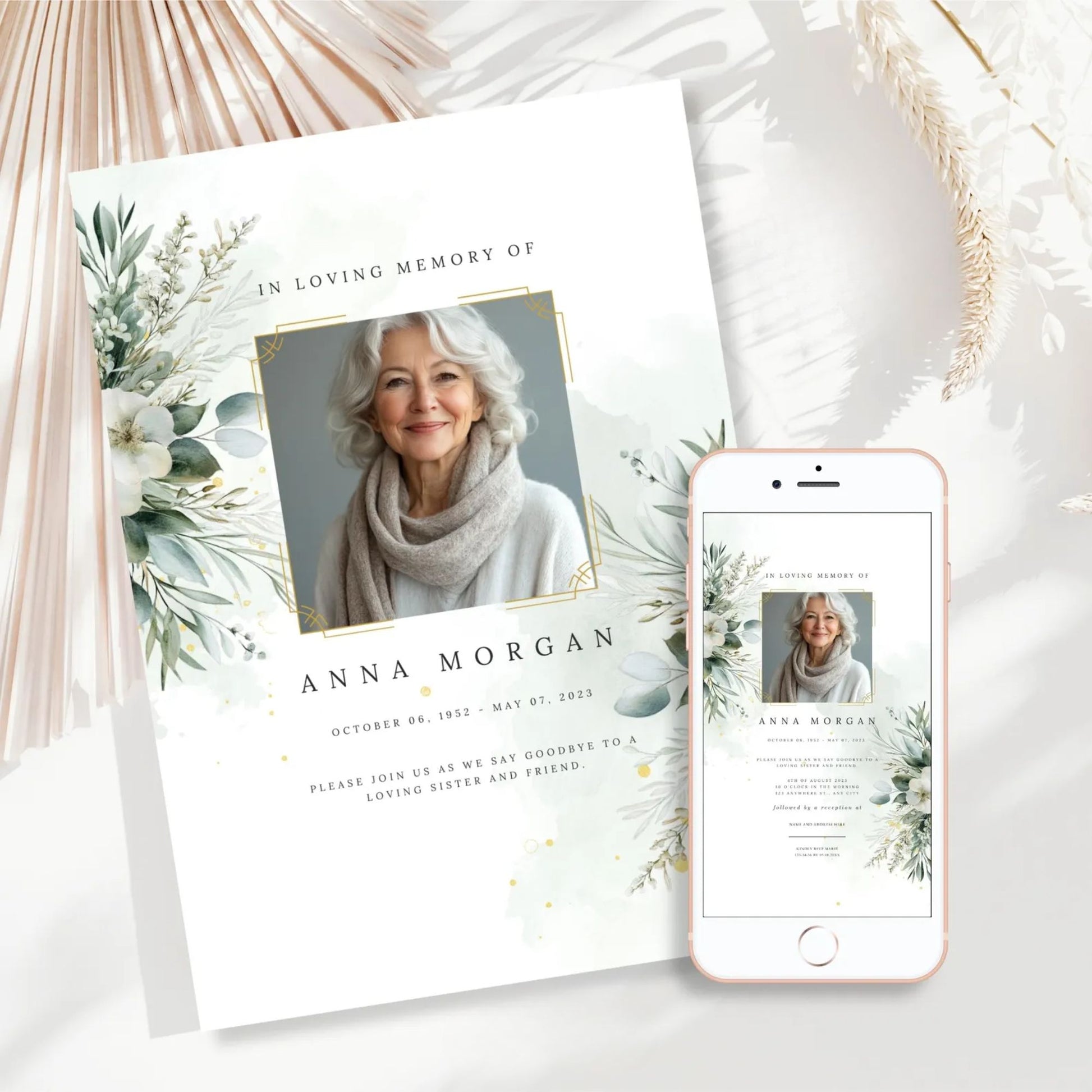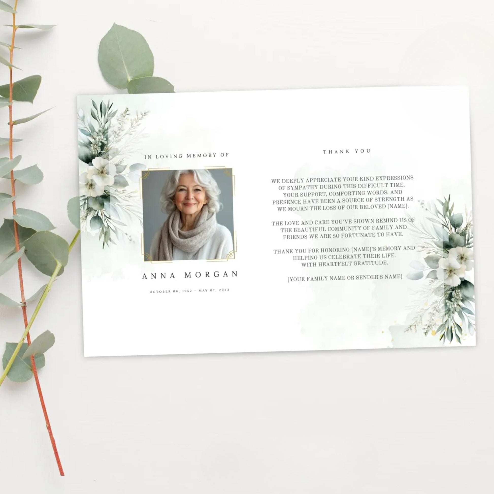 This versatile design can be used across all of our memorial pieces, from service booklets and posters to keepsakes, thank-you cards, and complete packages.