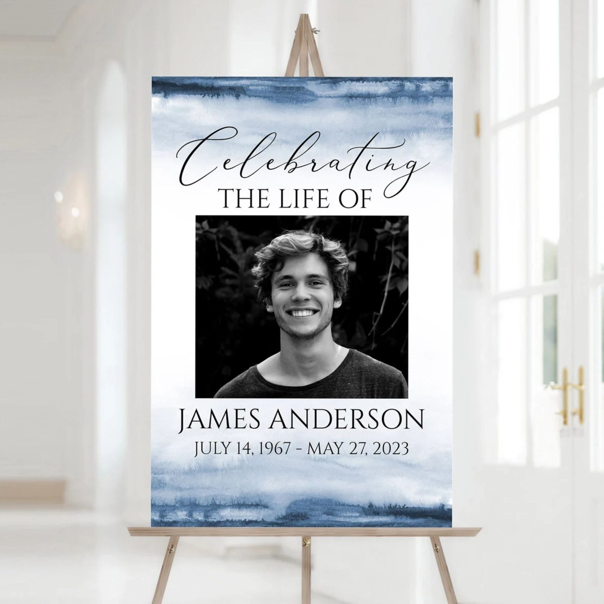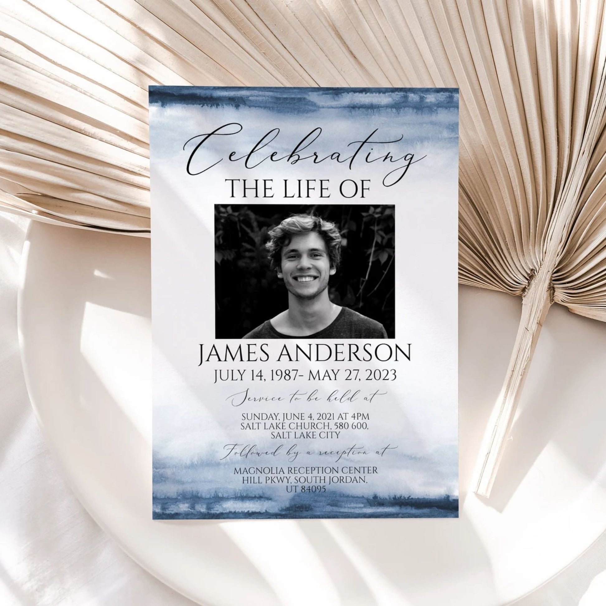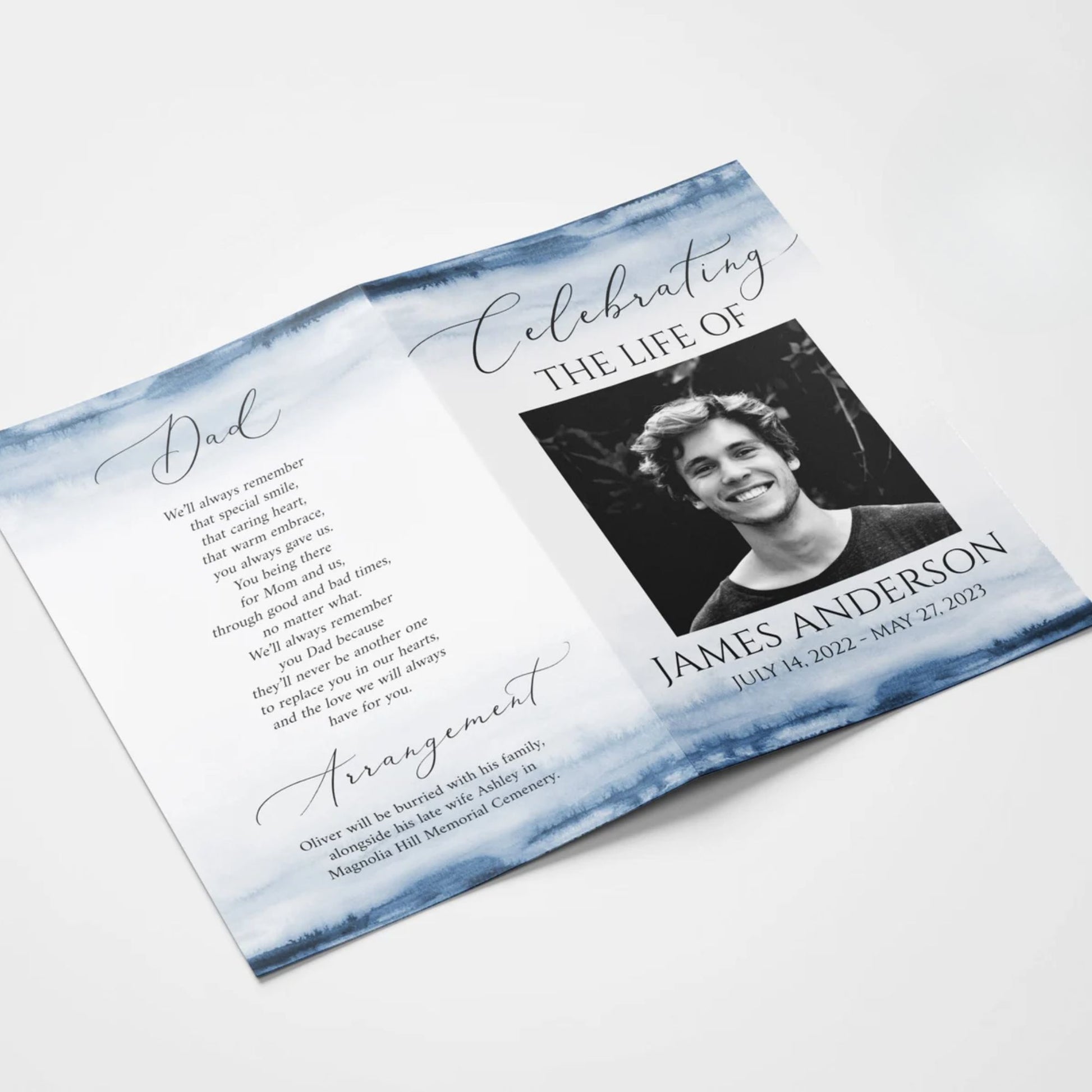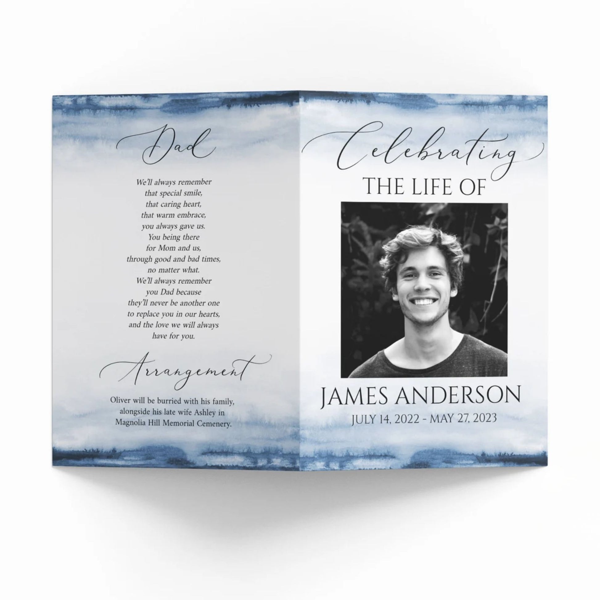 Our Misty Horizon design evokes the calming beauty of soft blue watercolour tones, blending gentle shades of mist and sky to create a serene and heartfelt tribute.