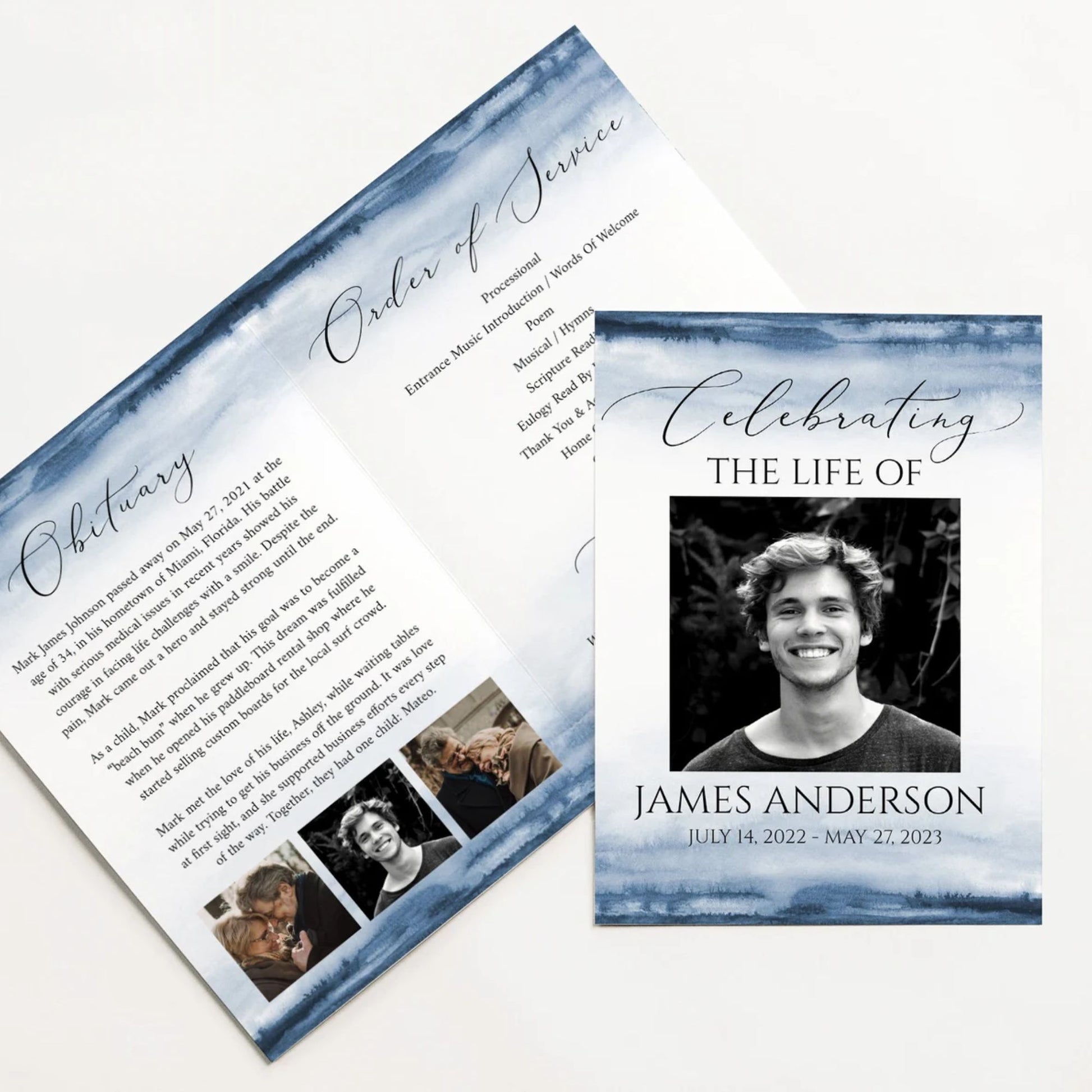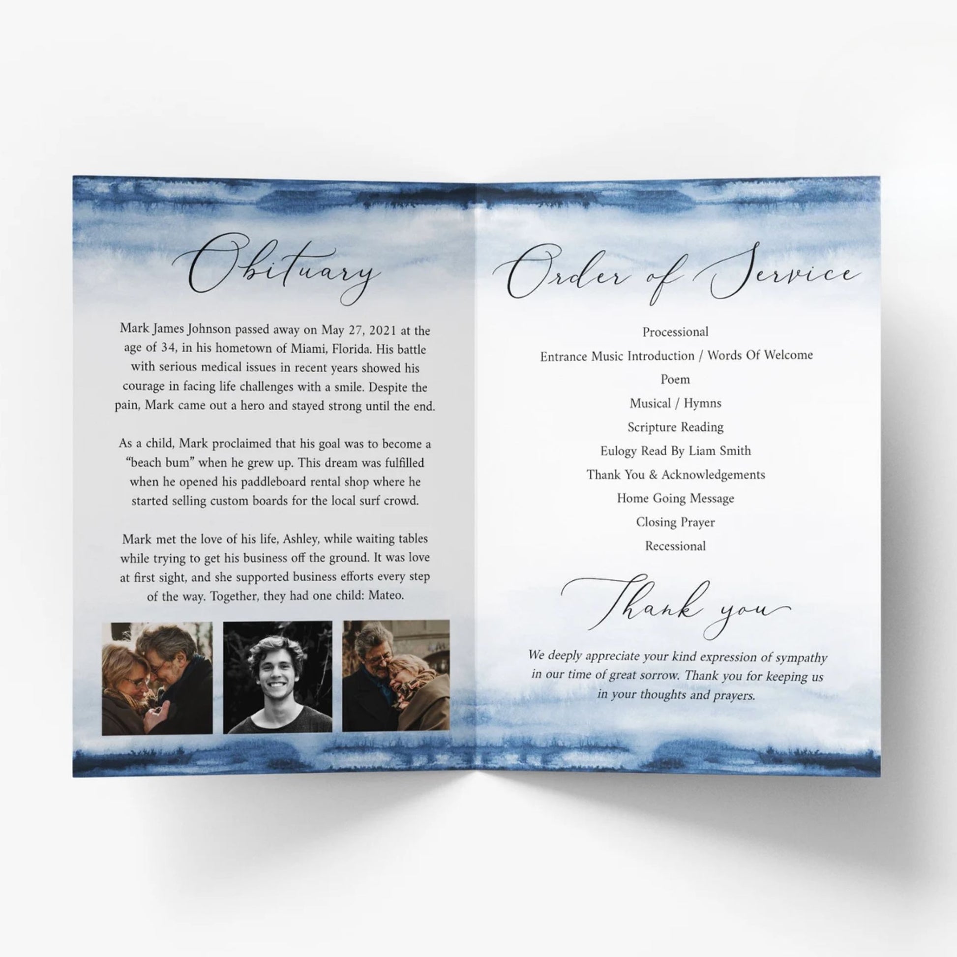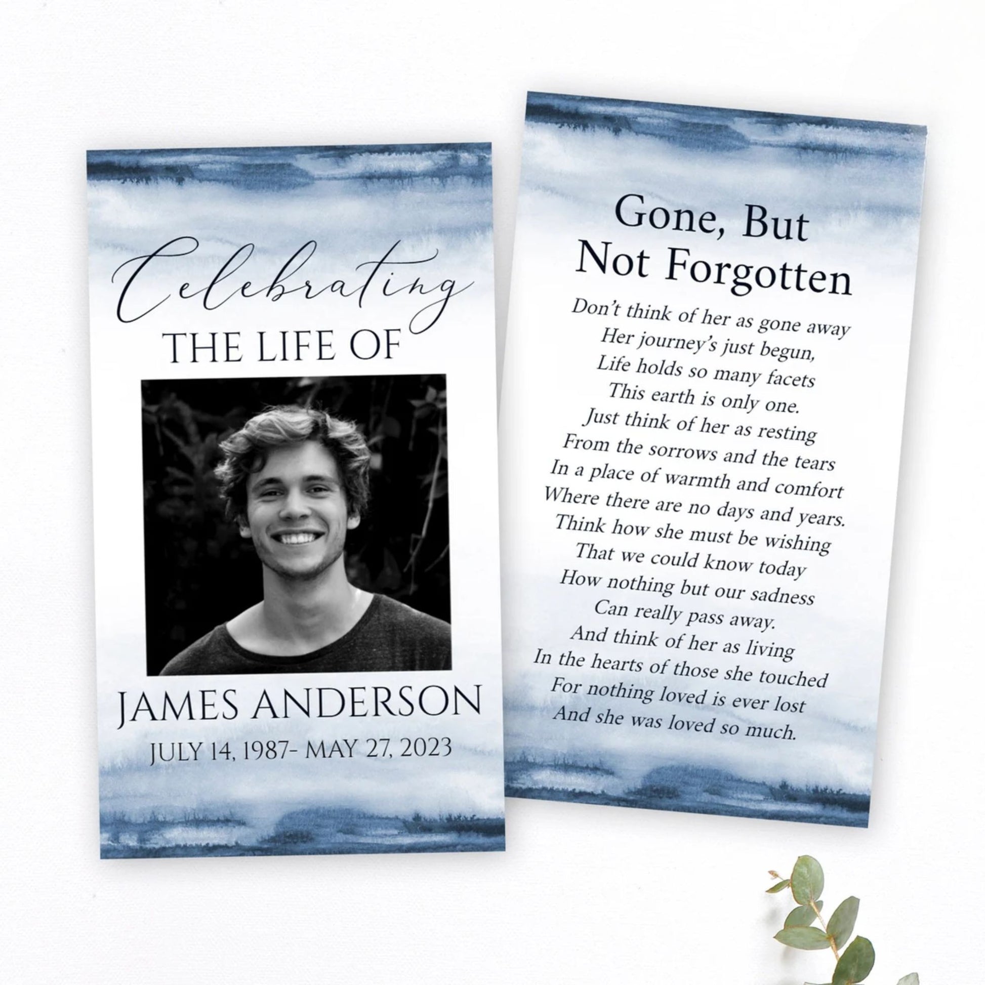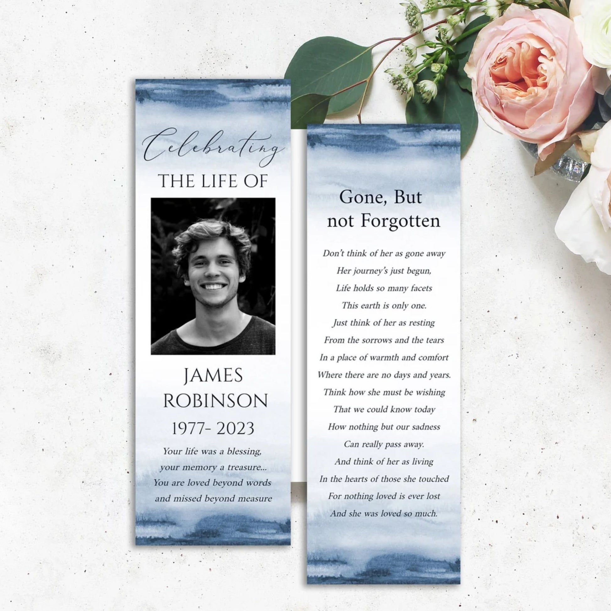 This versatile design can be used across all of our memorial pieces, from service booklets and posters to keepsakes, thank-you cards, and complete packages.
