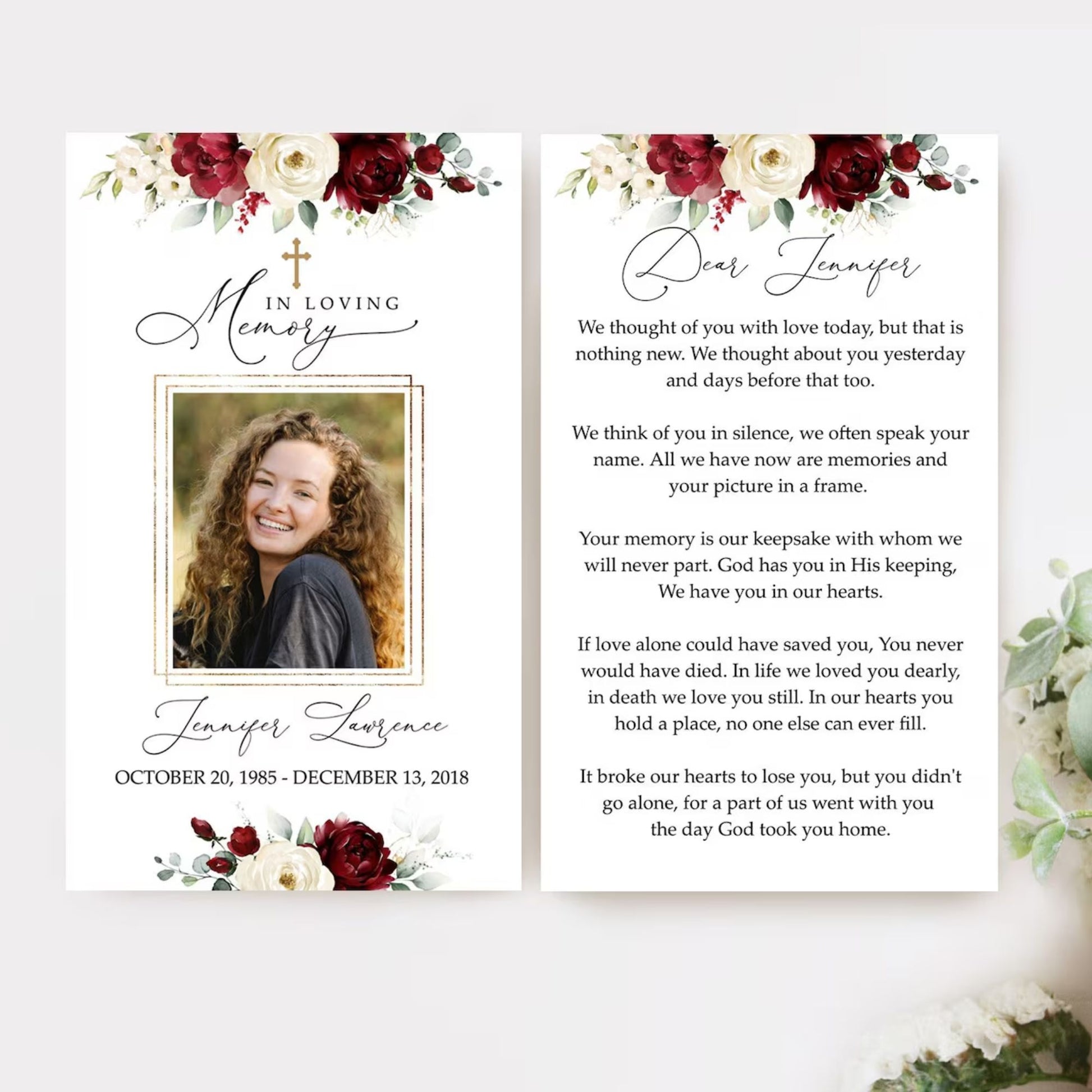 This versatile design can be used across all of our memorial pieces, from service booklets and posters to keepsakes, thank-you cards, and complete packages.