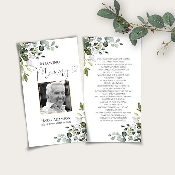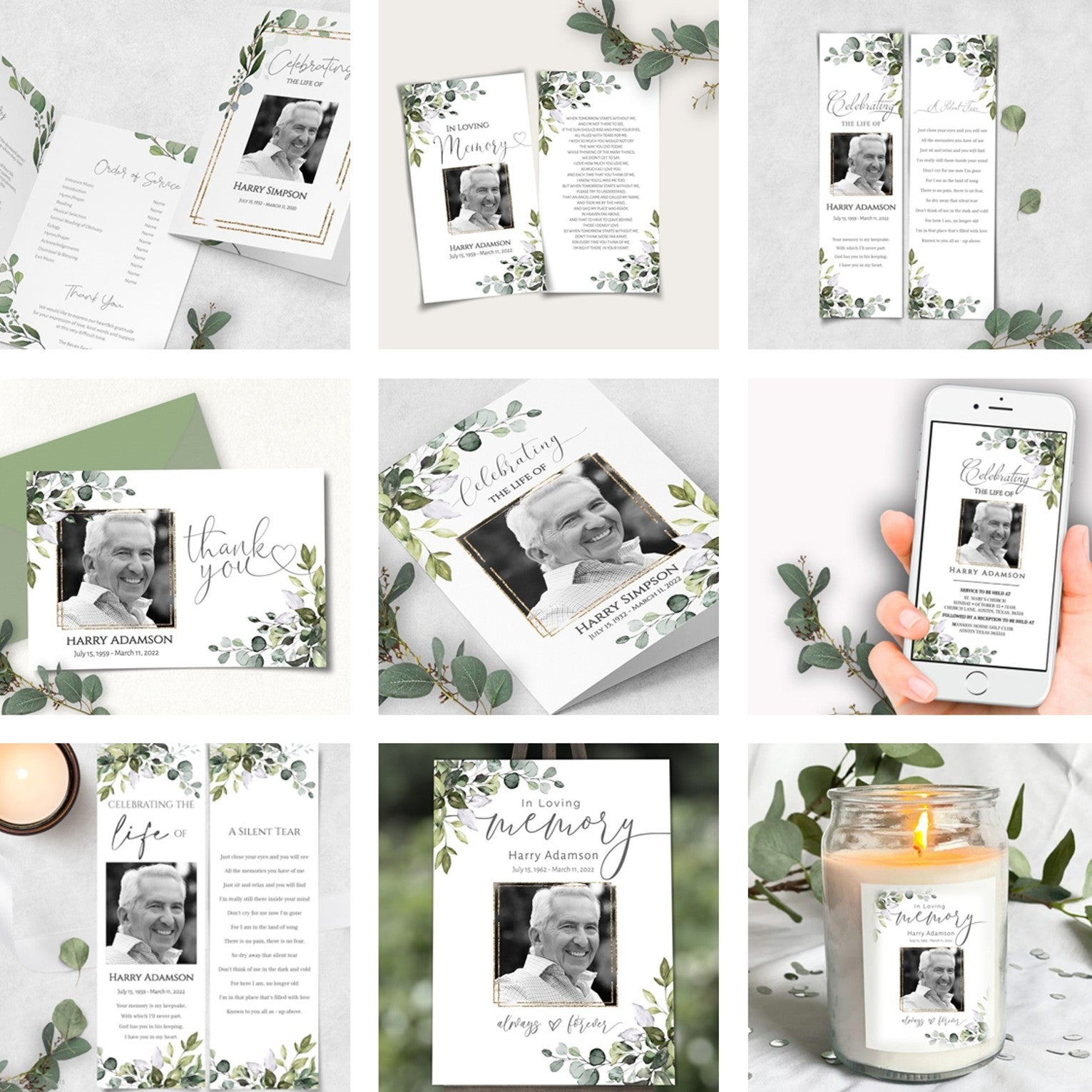 Our Digital Memorial Package offers families a complete set of beautifully designed tributes and service materials all delivered electronically. From a personalised order of service booklet and welcome sign to prayer cards, thank-you cards, photo posters, and even a memorial video tribute, each element is crafted to create a cohesive and meaningful farewell.